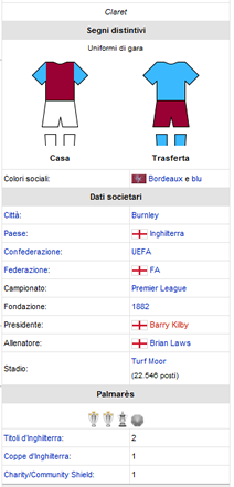 Il Burnley Football Club è una società calcistica inglese con sede nella città di Burnley, nel Lancashire. Milita in Premier League, la massima divisione del campionato inglese.